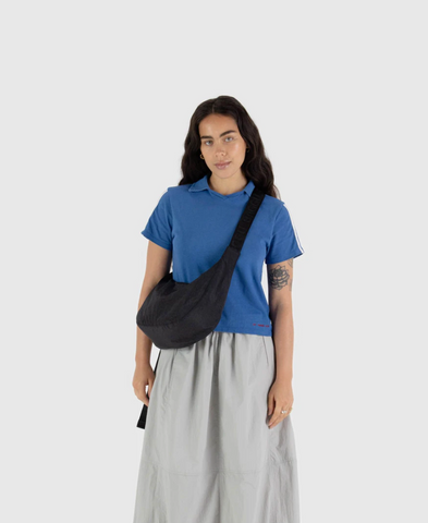 Practical doesn’t have to be boring. Our Medium Nylon Crescent Bag is effortlessly casual and large enough to carry more than just the essentials. Wear it slung over your shoulder or crossbody for a hands-free experience. Complete with two interior pockets that make it easy to stay organized.