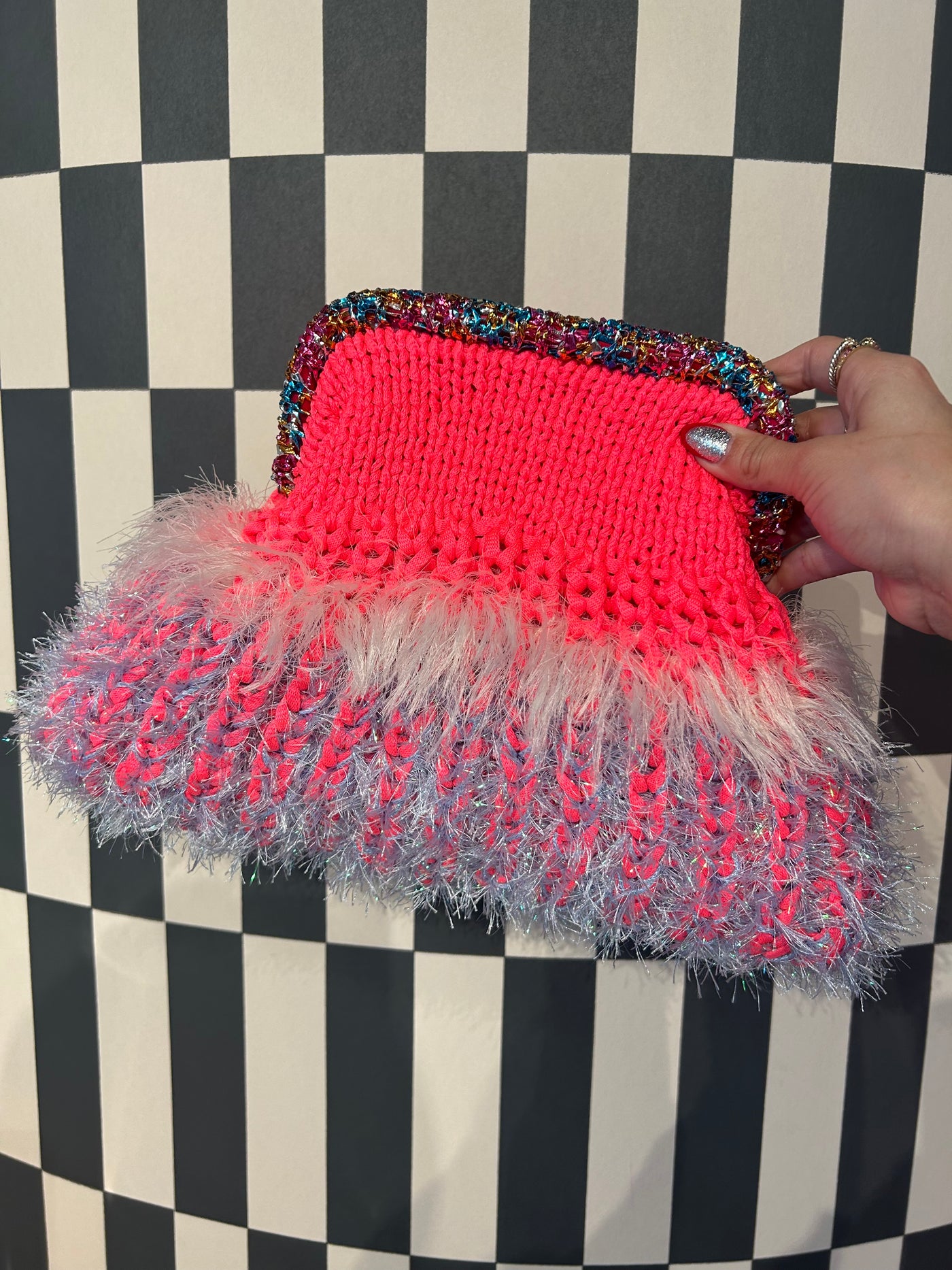Neon Pink, Light Blue & Confetti Metallic Clutch