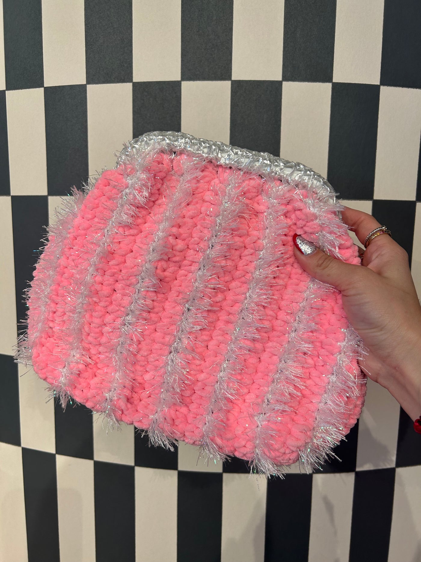 Bubblegum & White Metallic Clutch