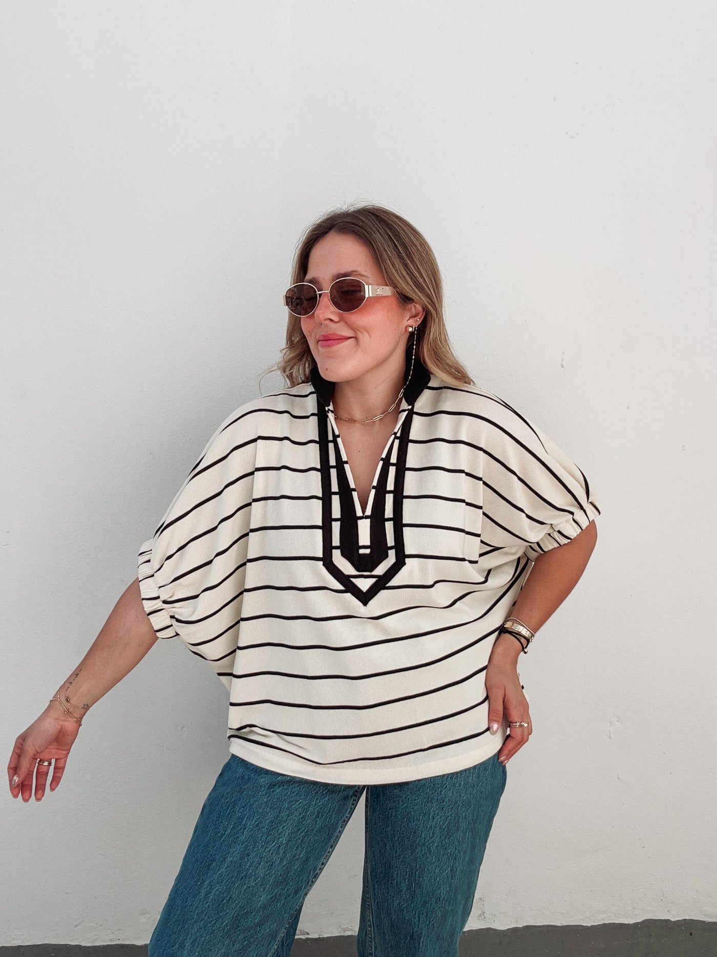 Inform when this item available: Black & Vanilla Collar Stripe Blouse