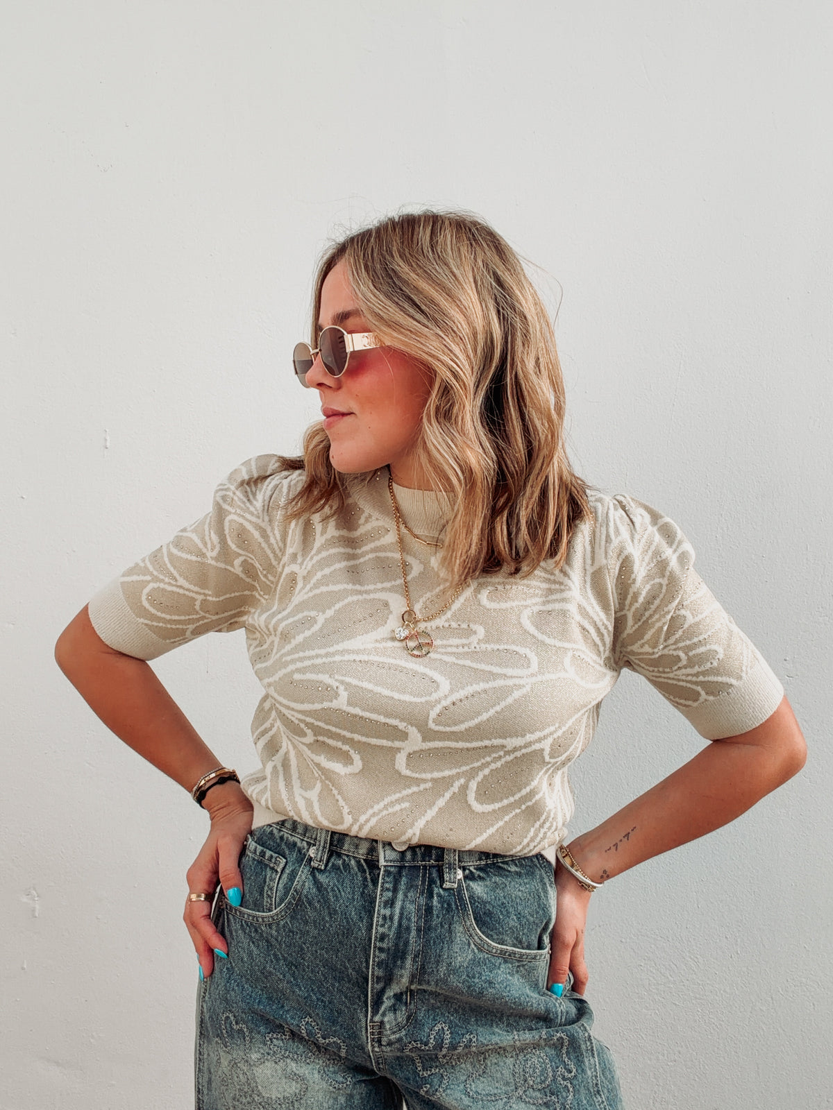 Inform when this item available: Camel & Vanilla Rhinestone Knit Top