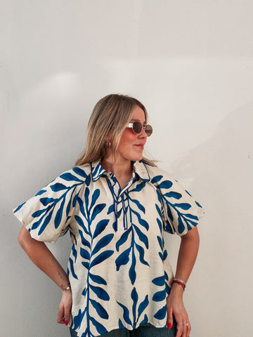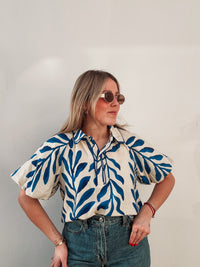 Inform when this item available: Royal Blue Leaves Blouse