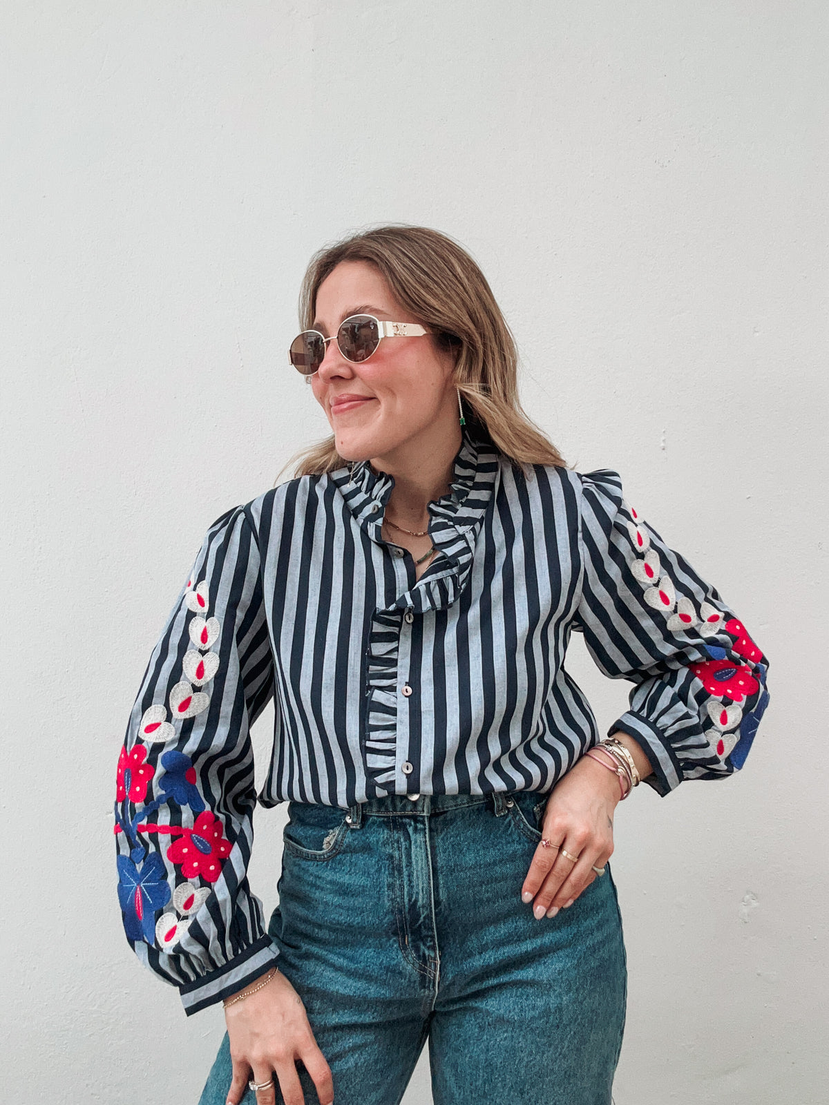 Inform when this item available: Blue Stripes Embroidered Blouse