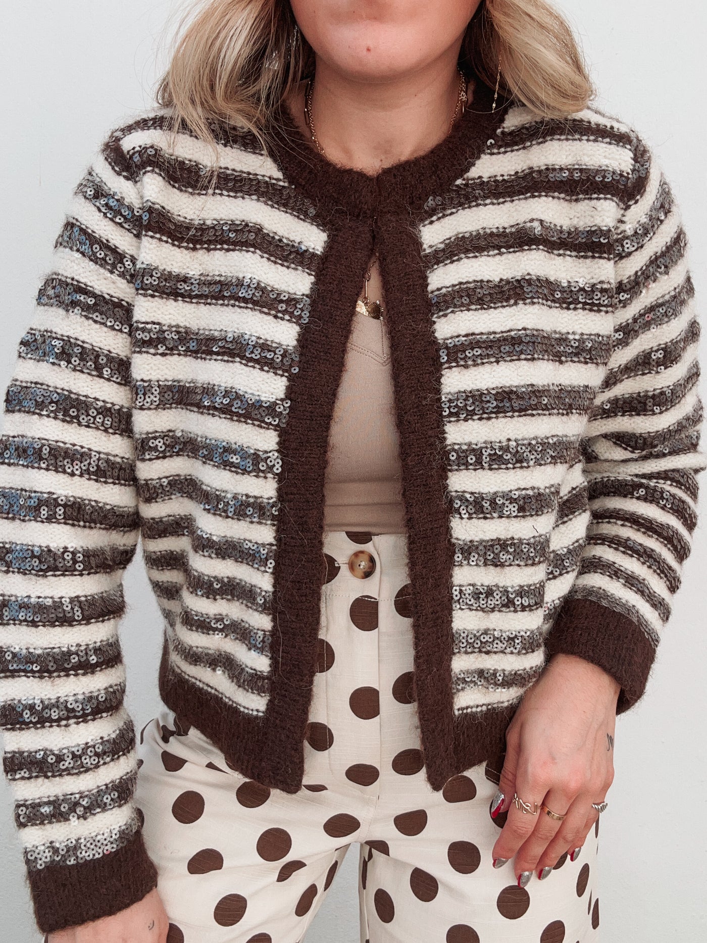 Inform when this item available: Brown Sequin Striped Cardigan