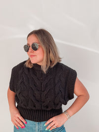 Black Cable Knit Top - small