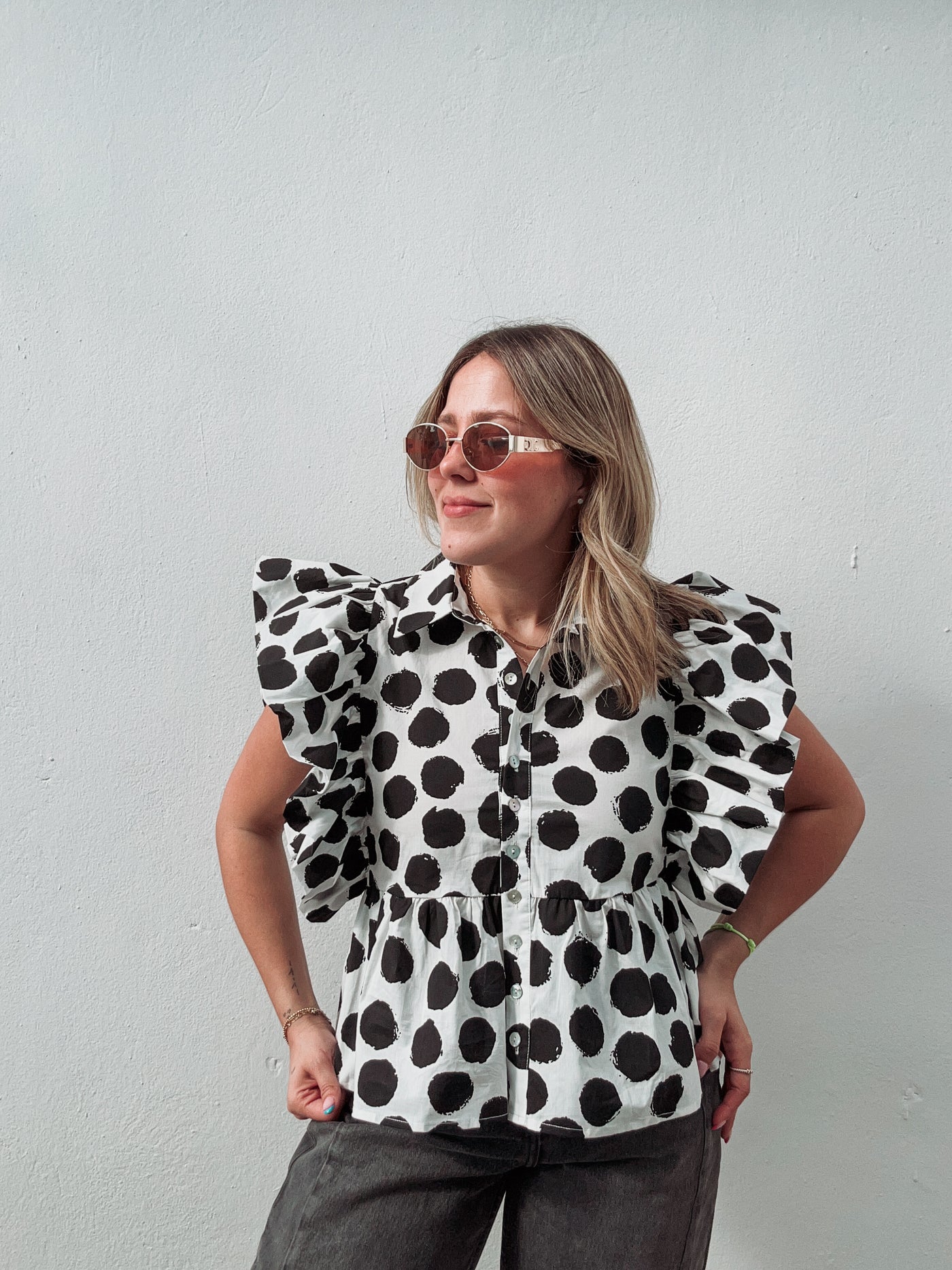 Inform when this item available: Black Ruffle Polka Dot Blouse