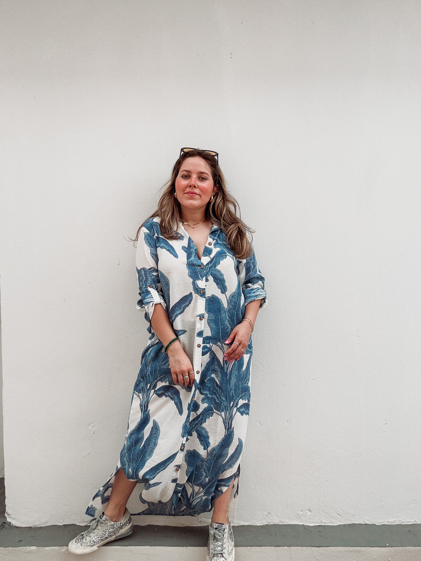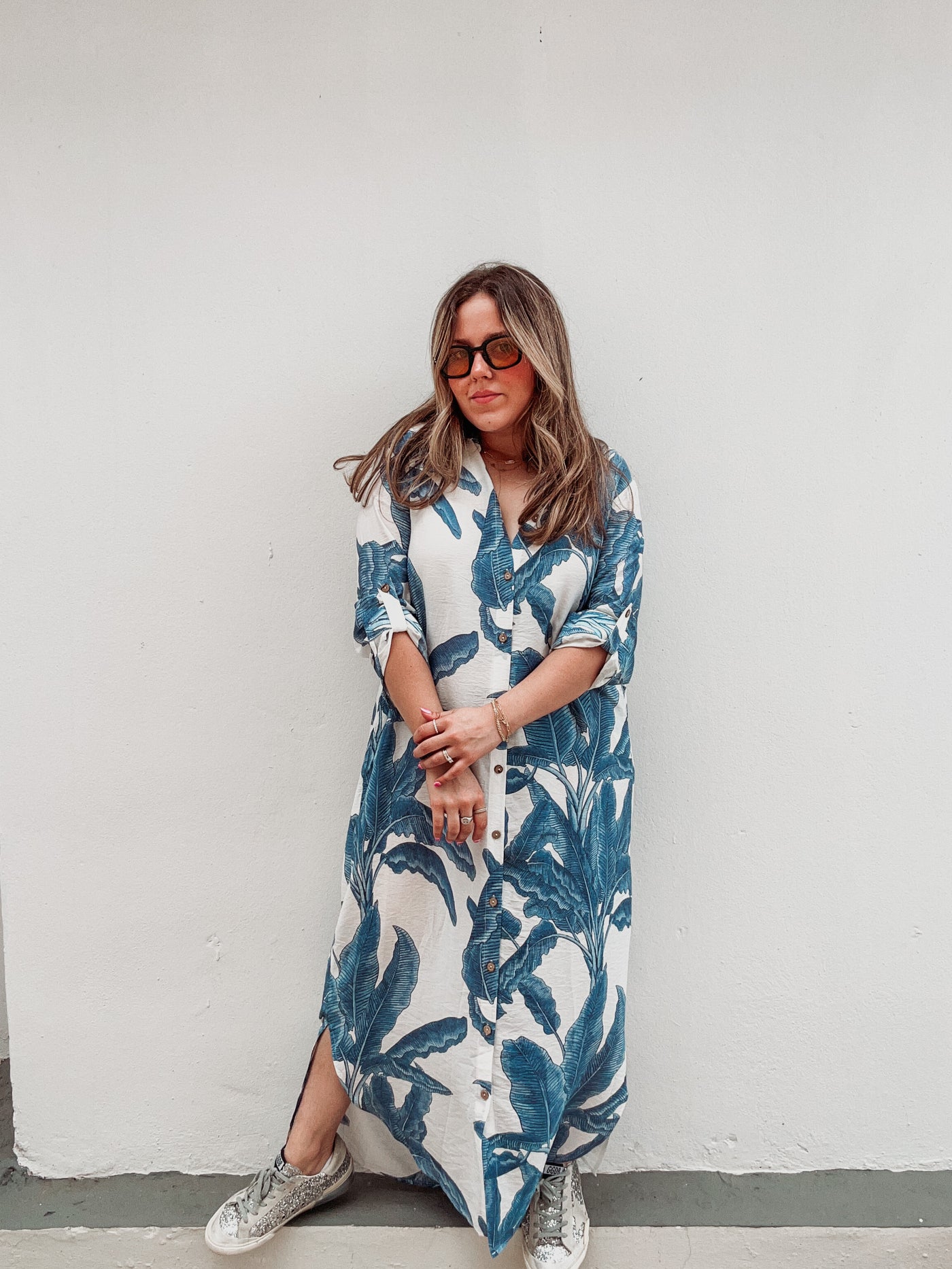 Inform when this item available: Blue Banana Leaves Printed Dress