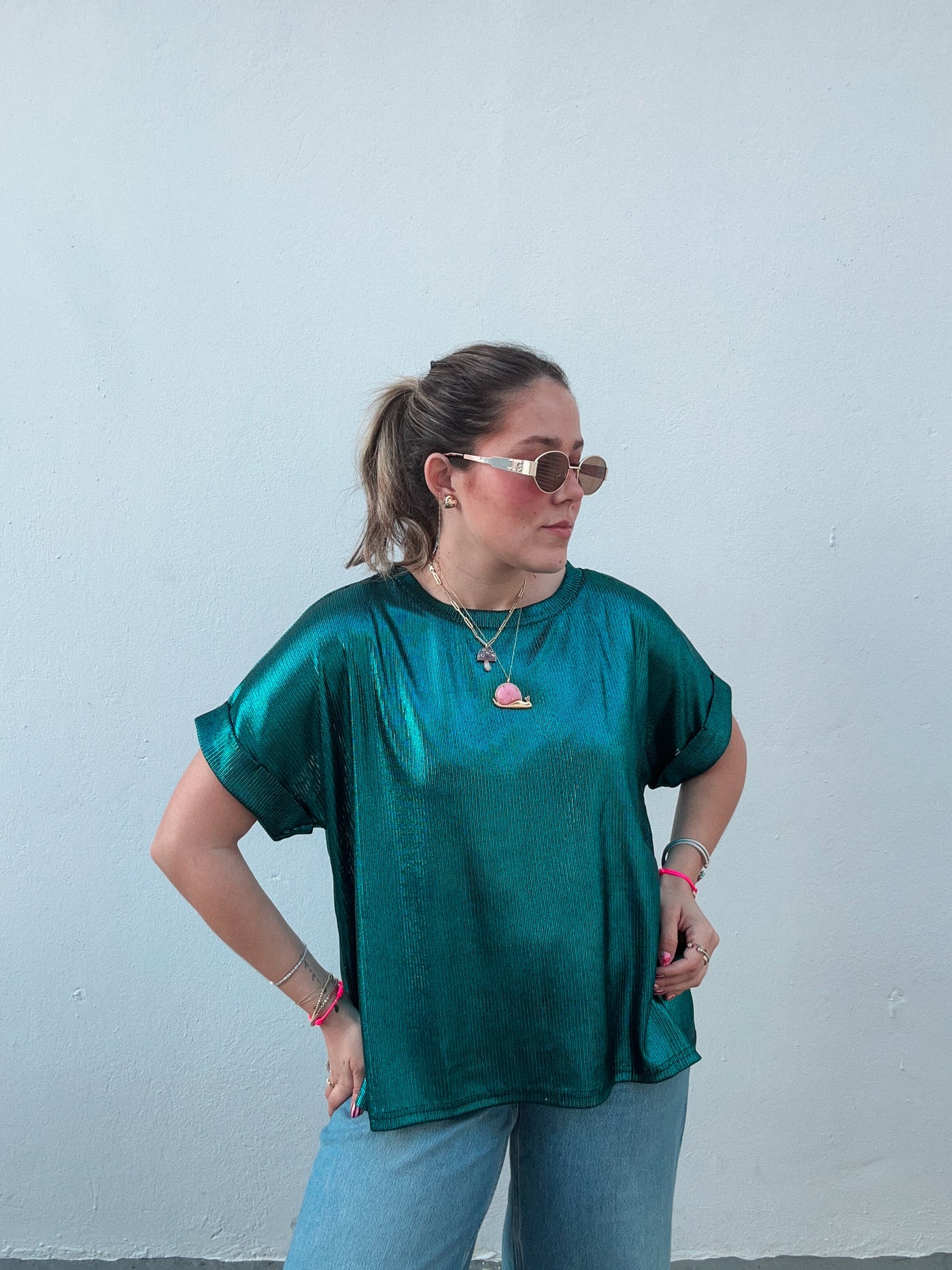 Teal Metallic Top Sale