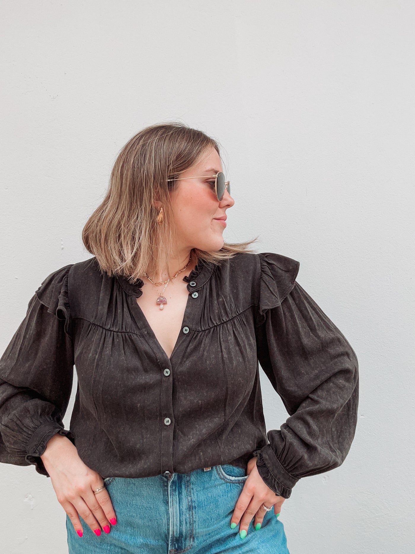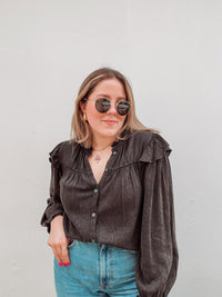 Inform when this item available: Charcoal Ruffle Washed Blouse