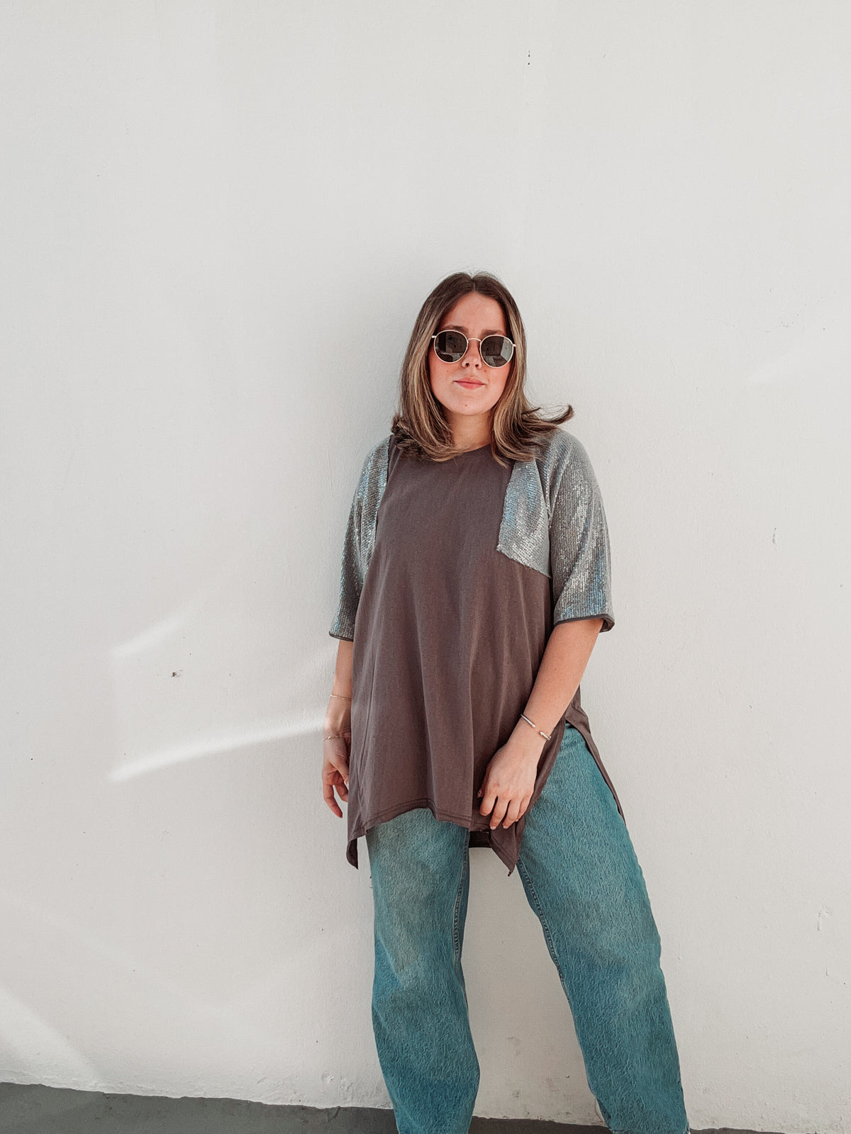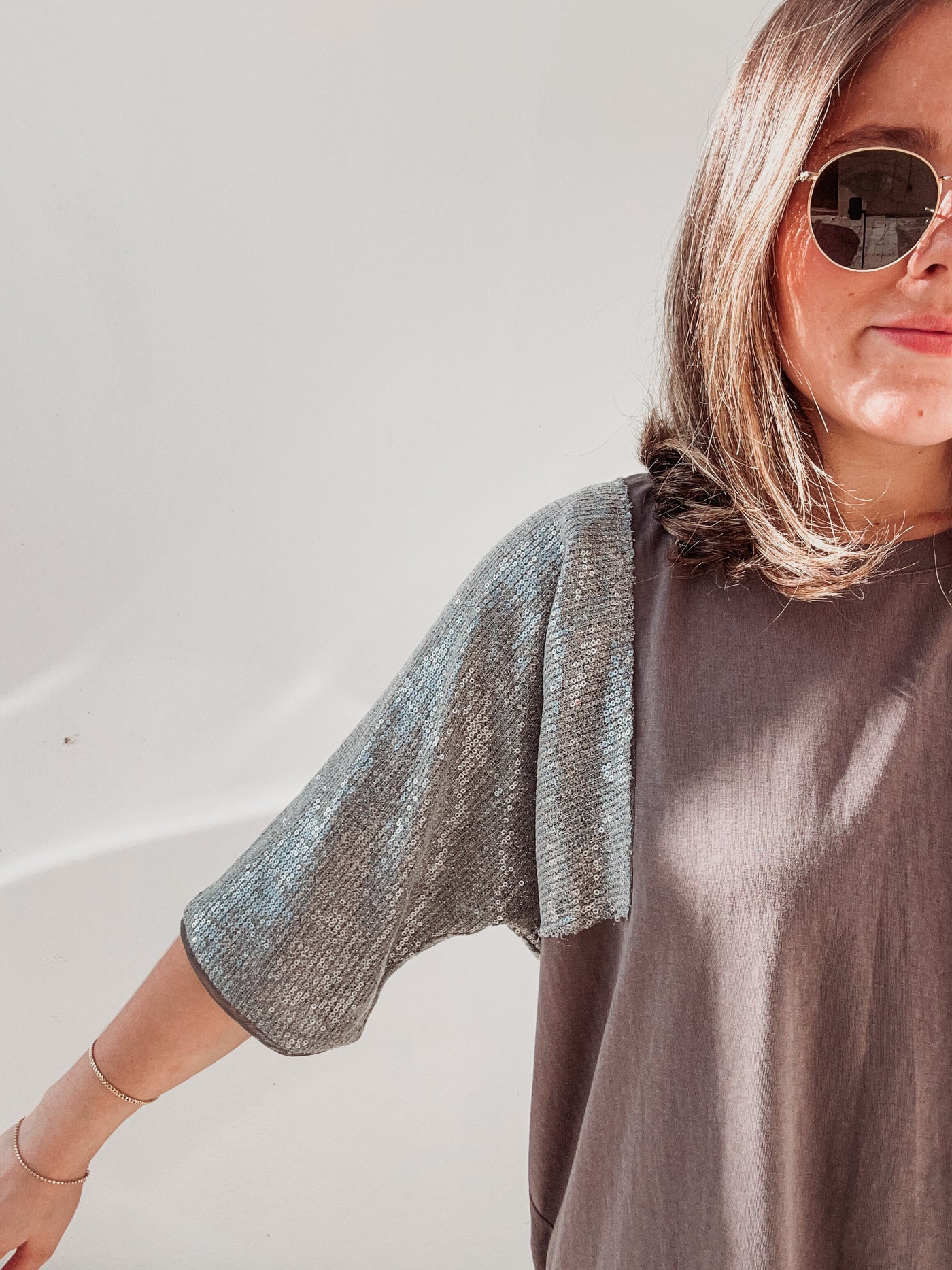 Inform when this item available: Charcoal Sequin Hi Low Tee