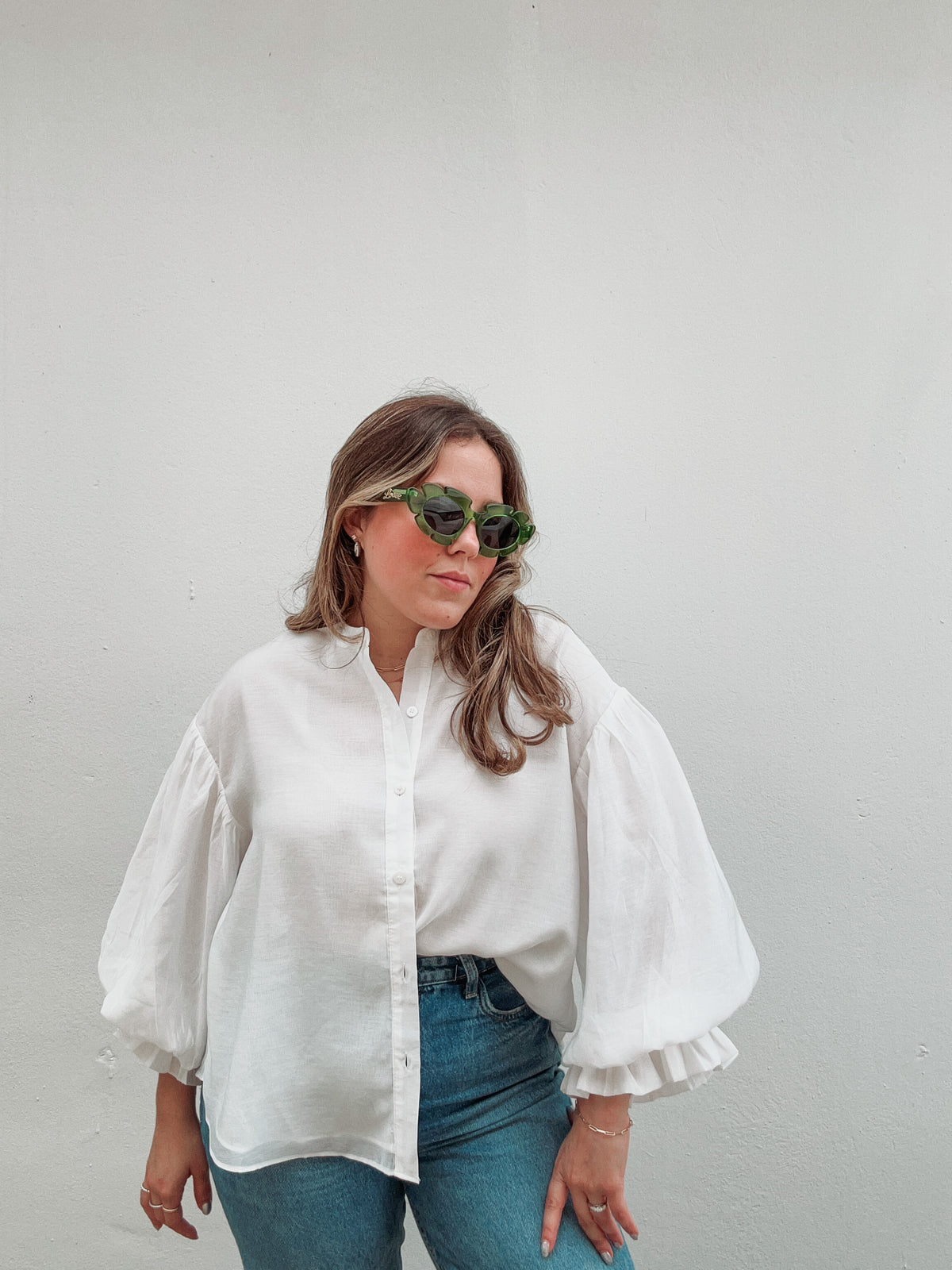 Blanc Cabana Puff Sleeve Blouse - small
