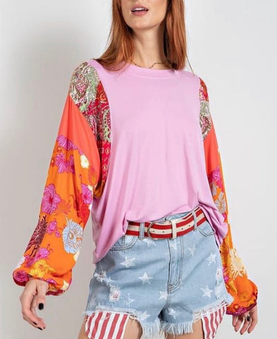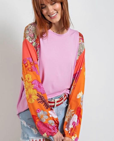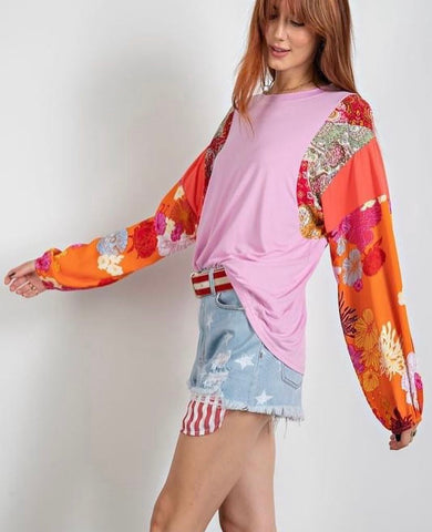 Inform when this item available: Pink Floral Printed Sleeve Tee Blouse