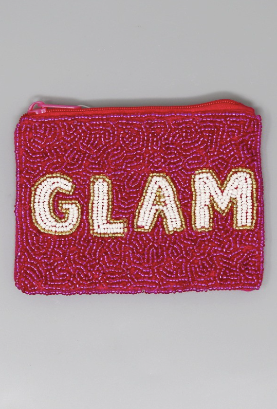 Material: Lead and nickel compliant plated metal, seed bead, polyester Closure: Zipper Size: 3.5" x 5"