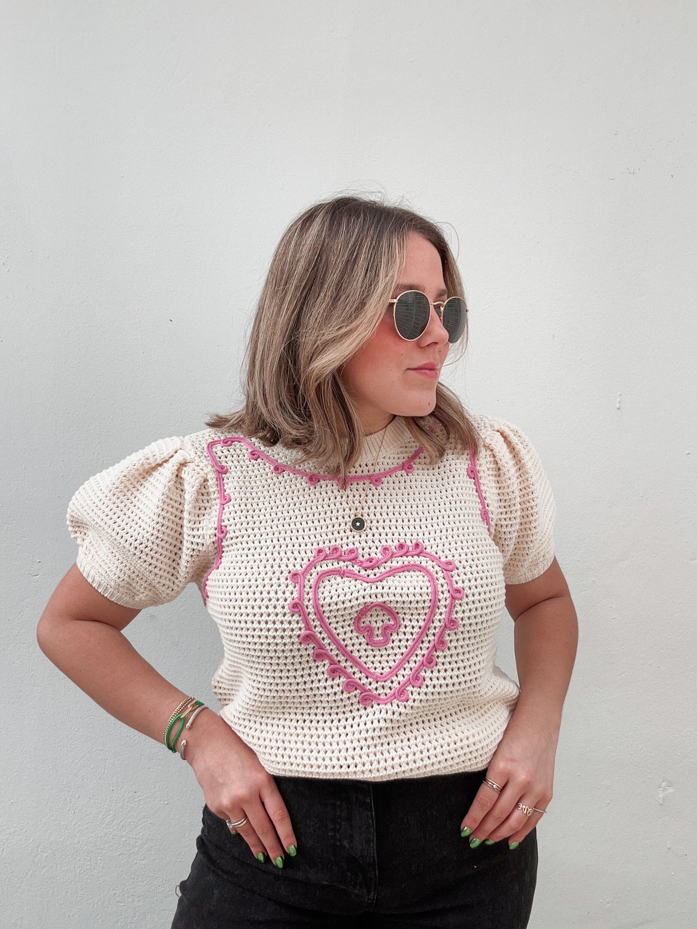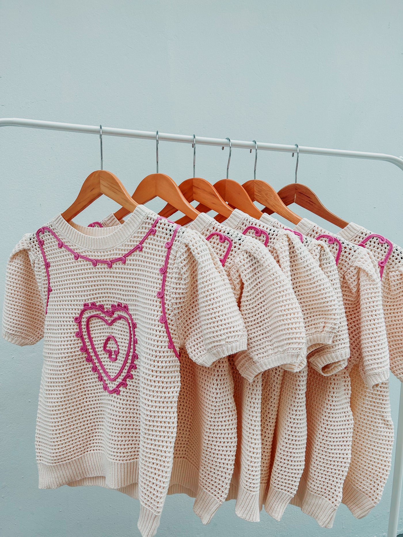 PRE ORDER: Queen of Hearts Cream & Pink Knit - small