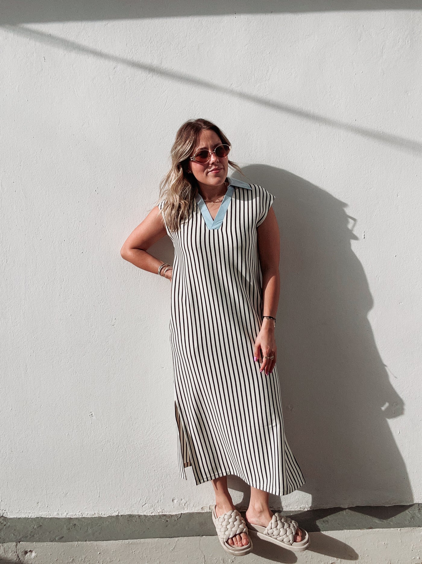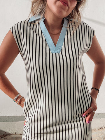 Inform when this item available: Cream, Black & Light Blue Stripes Dress