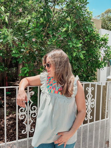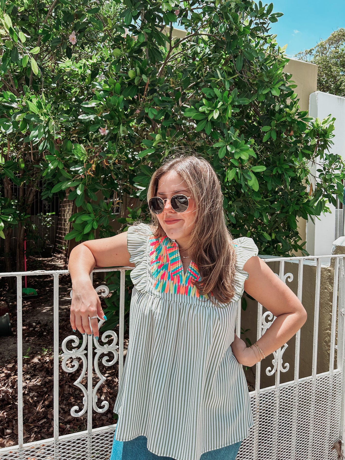 Inform when this item available: Embroidered Rainbow Striped Blouse