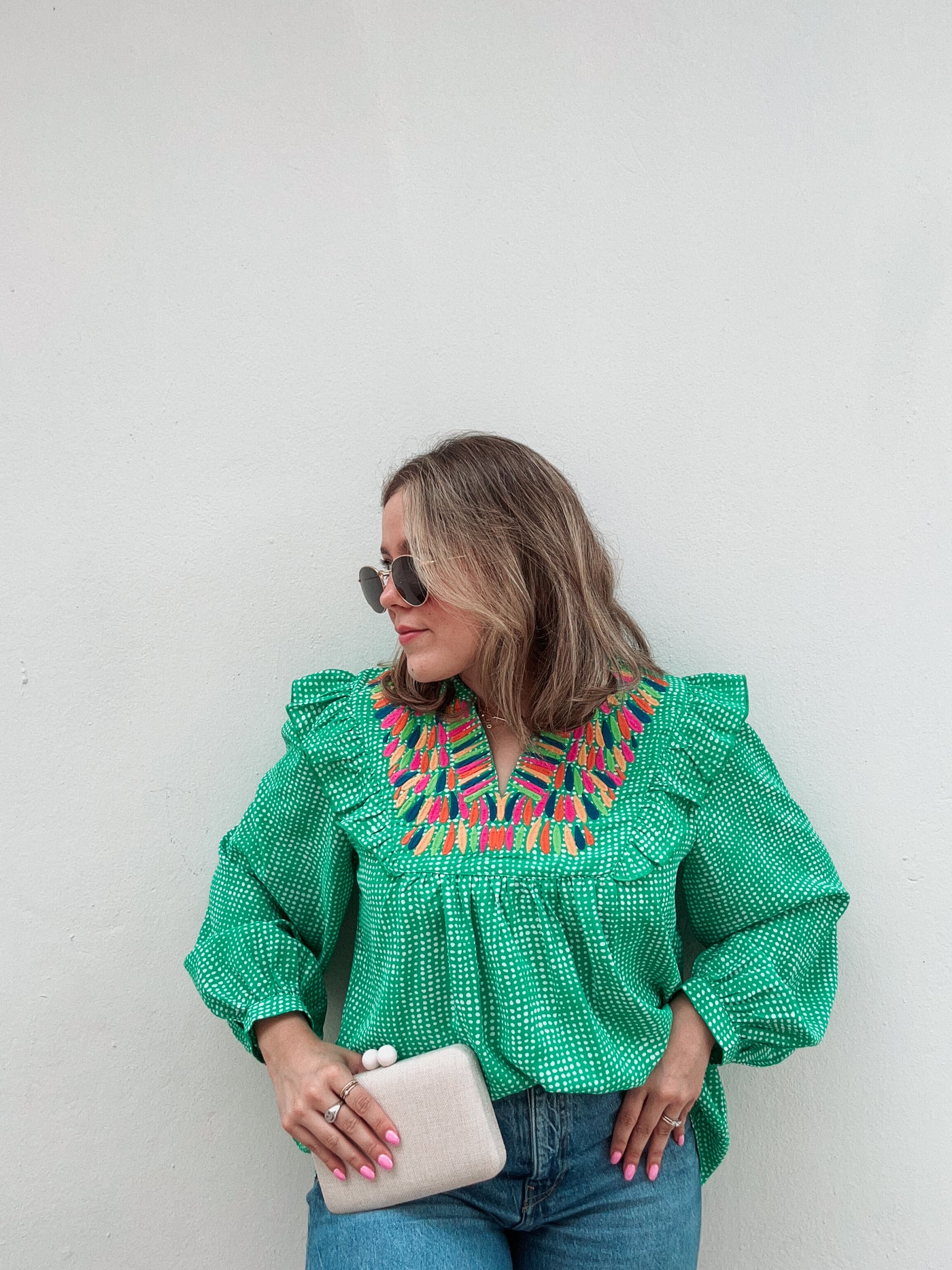 Inform when this item available: Esmeralda Printed Embroidered Top