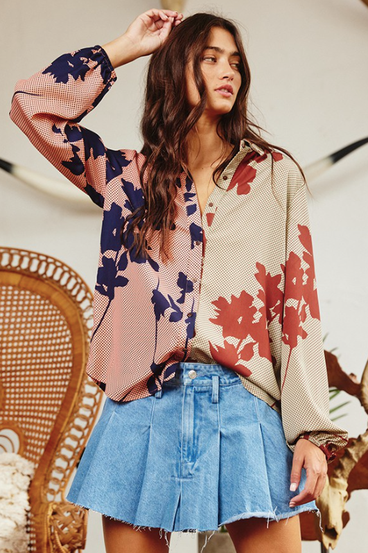 Inform when this item available: Floral Colorblock Blouse