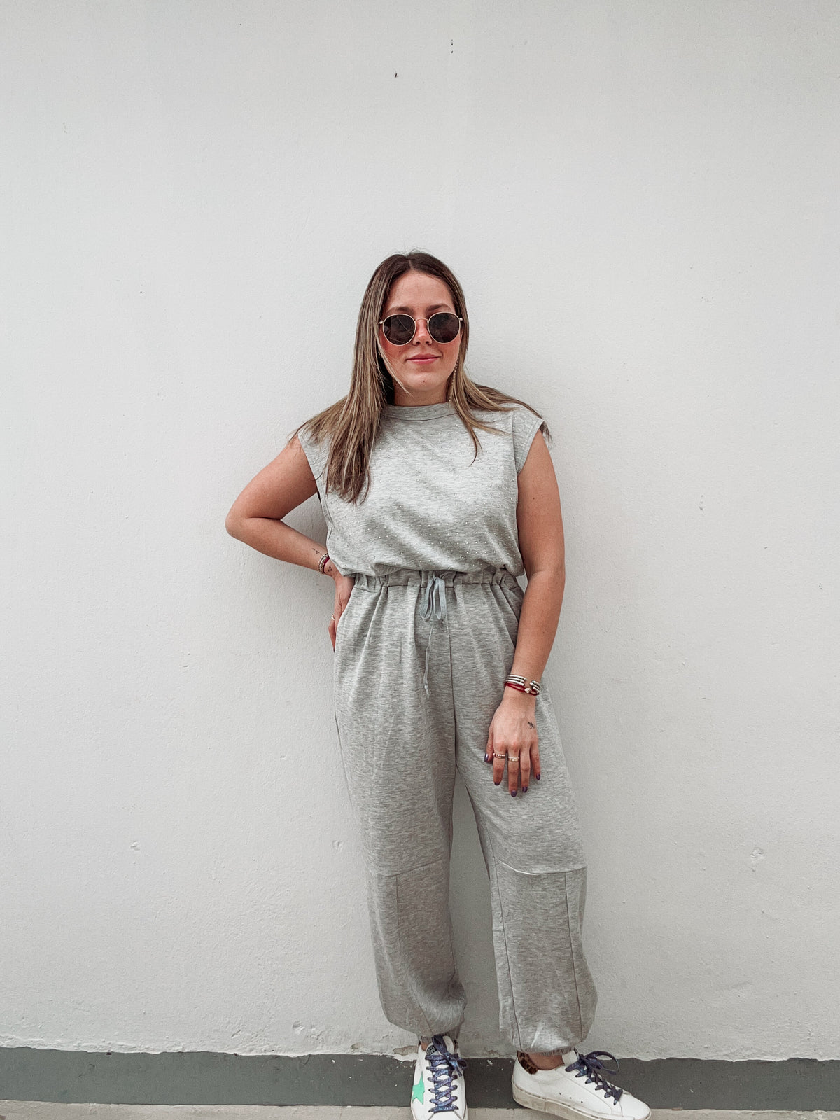 Grey Rhinestones Jumpsuit - Small