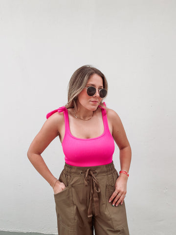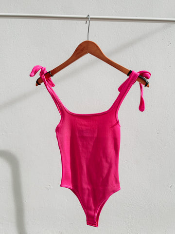 Inform when this item available: Hot Pink Bow Ribbed Bodysuit