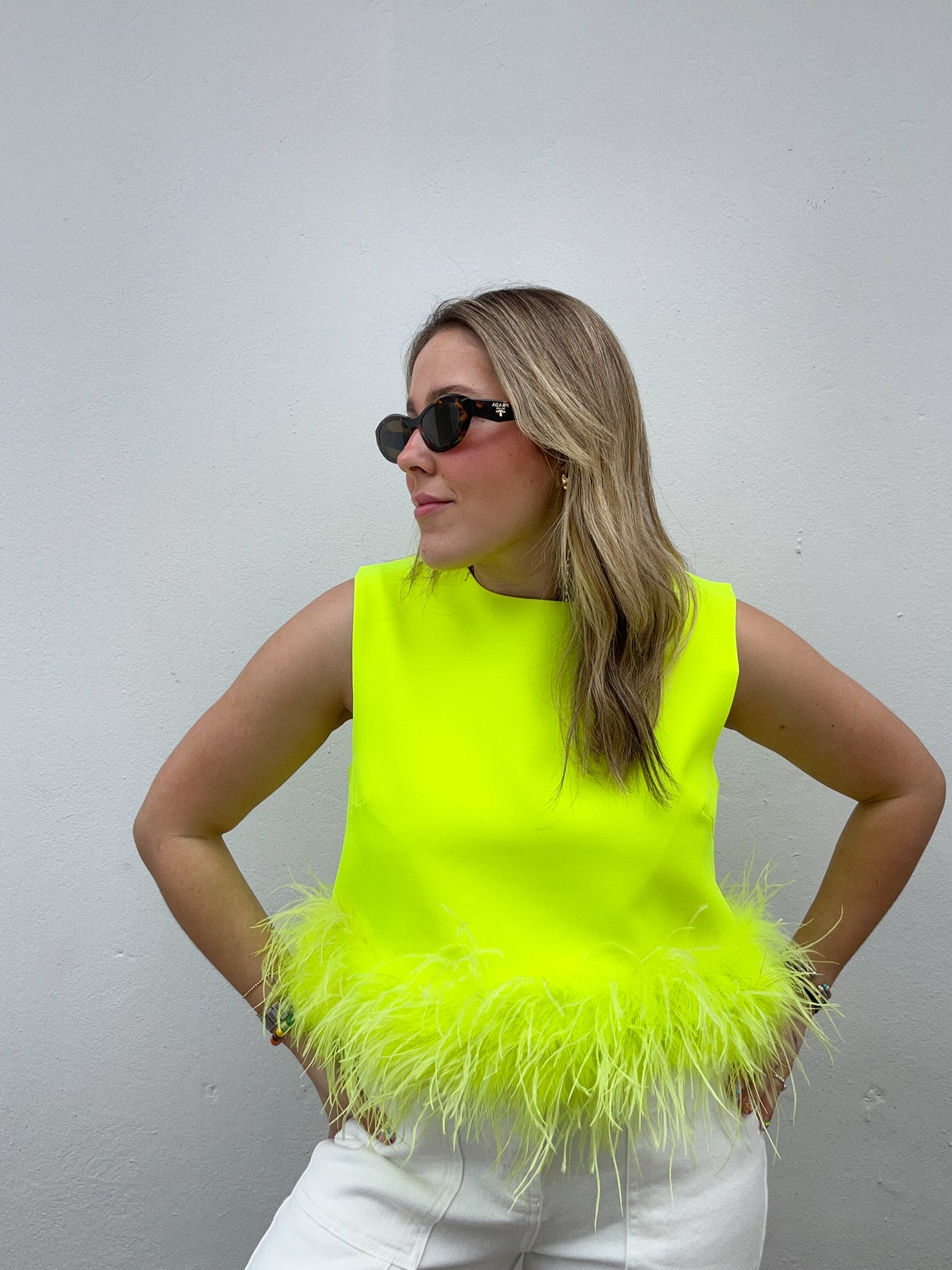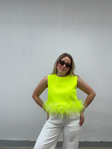 Neon Lime Feather Blouse Sale
