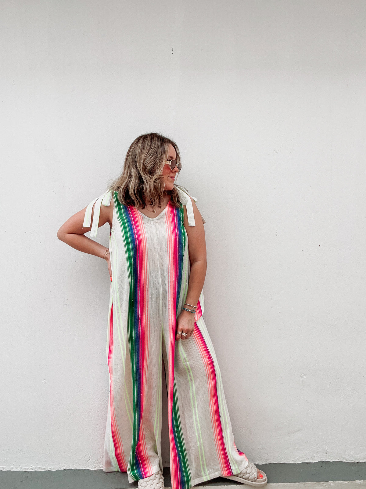 Neon Striped Glitter Jumpsuit - ONE SIZE