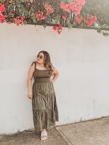 Inform when this item available: Olive Floral Eyelet Midi Dress