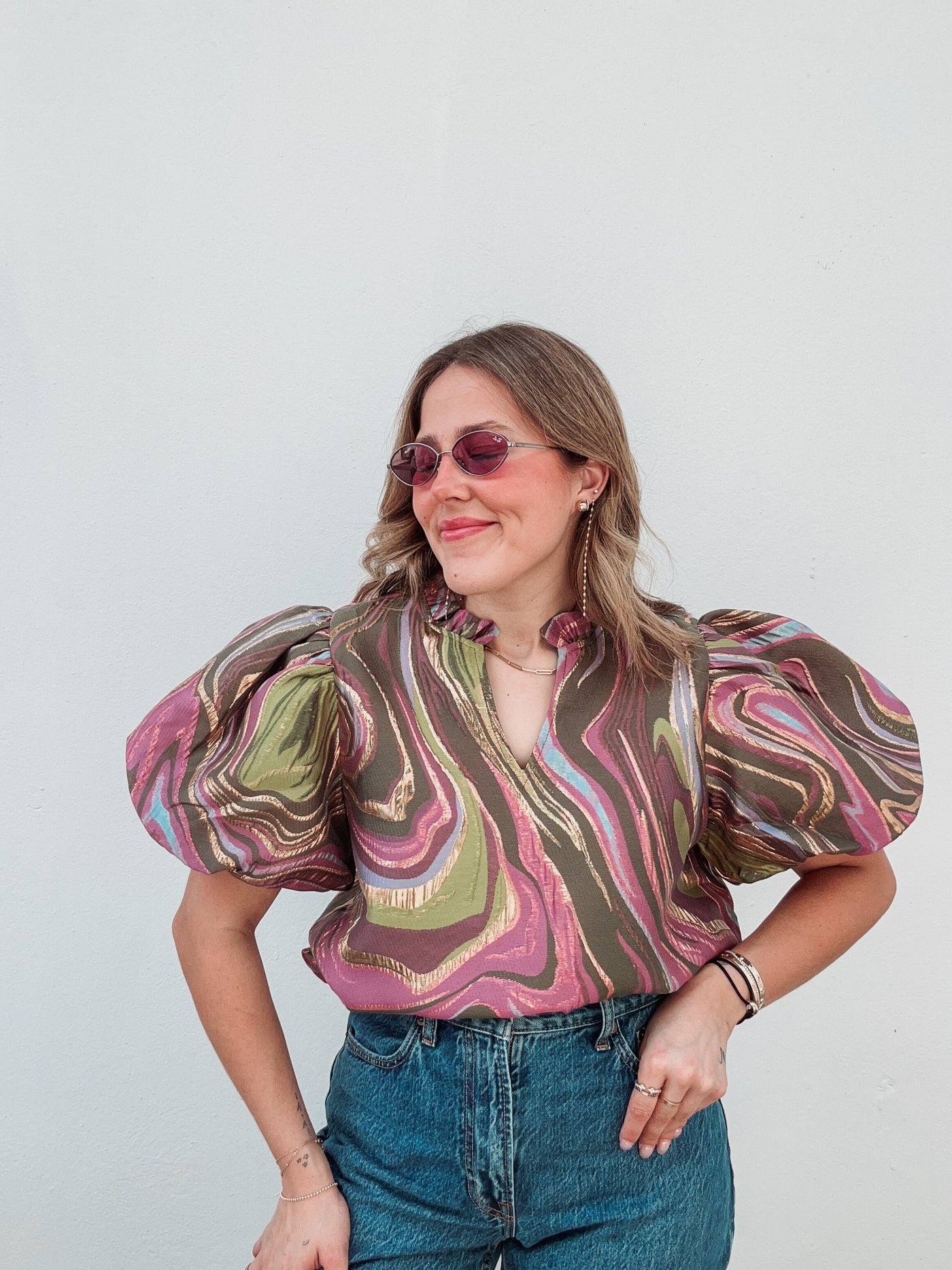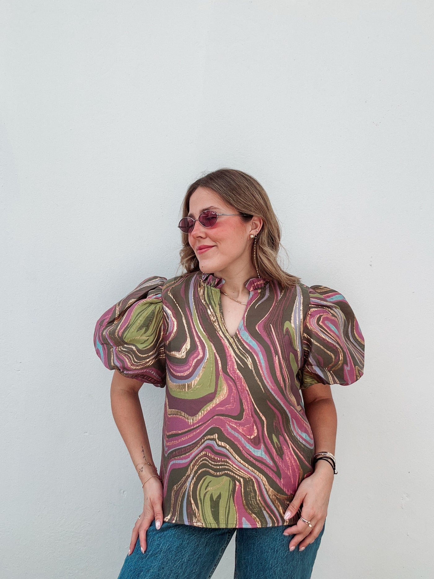 Inform when this item available: Olive & Pink Metallic Marble Blouse