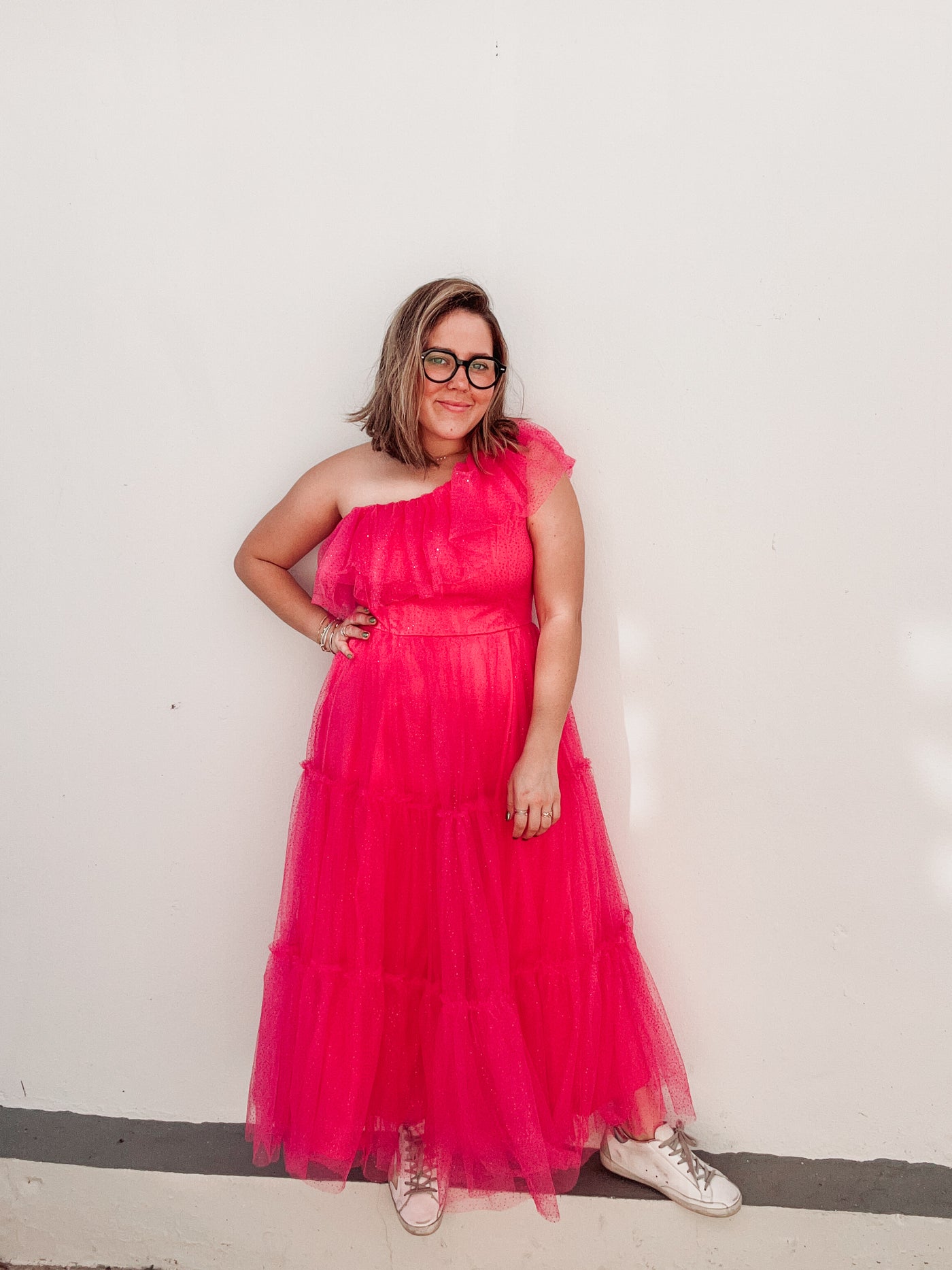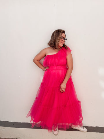 Inform when this item available: Pink Shimmer Ruffle Dress