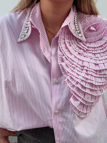 PRE ORDER: Pink Striped Rhinestone Blouse Sale