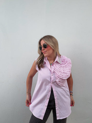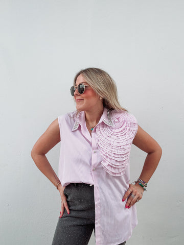 PRE ORDER: Pink Striped Rhinestone Blouse - Small