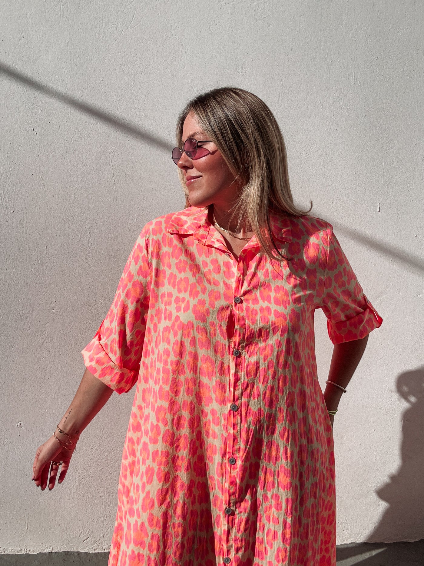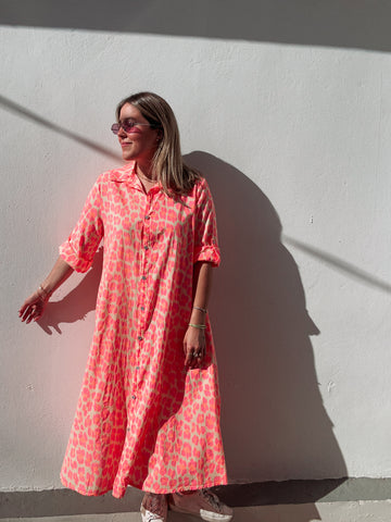 Inform when this item available: Pink & Tangerine Neon Leopard Dress