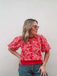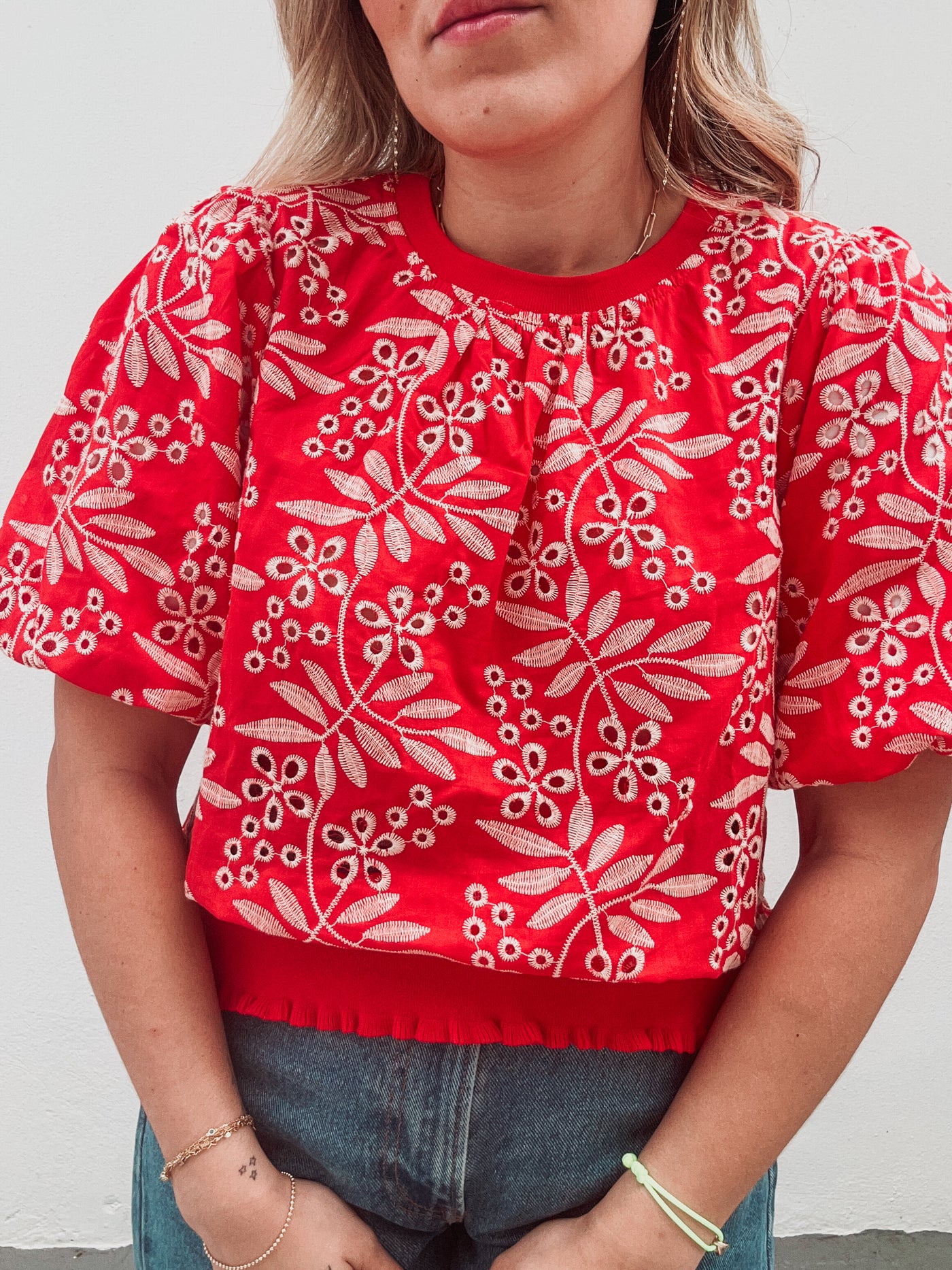 Red Embroidered Eyelet Top - Small
