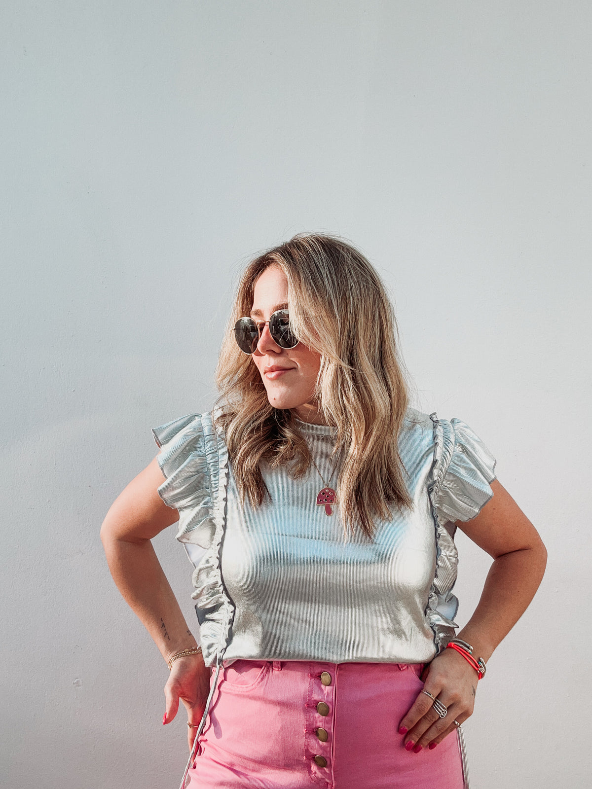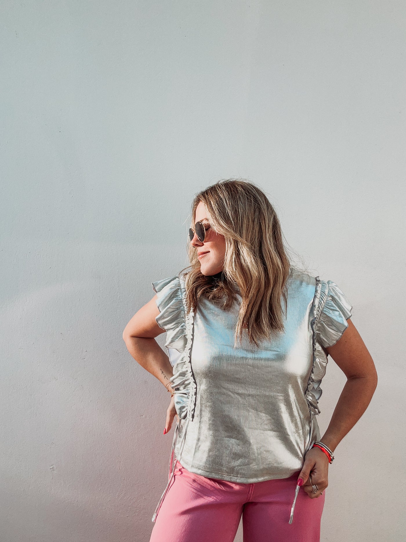 Inform when this item available: Silver Metallic Ruffle Top