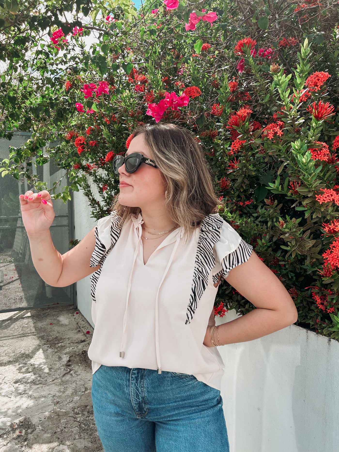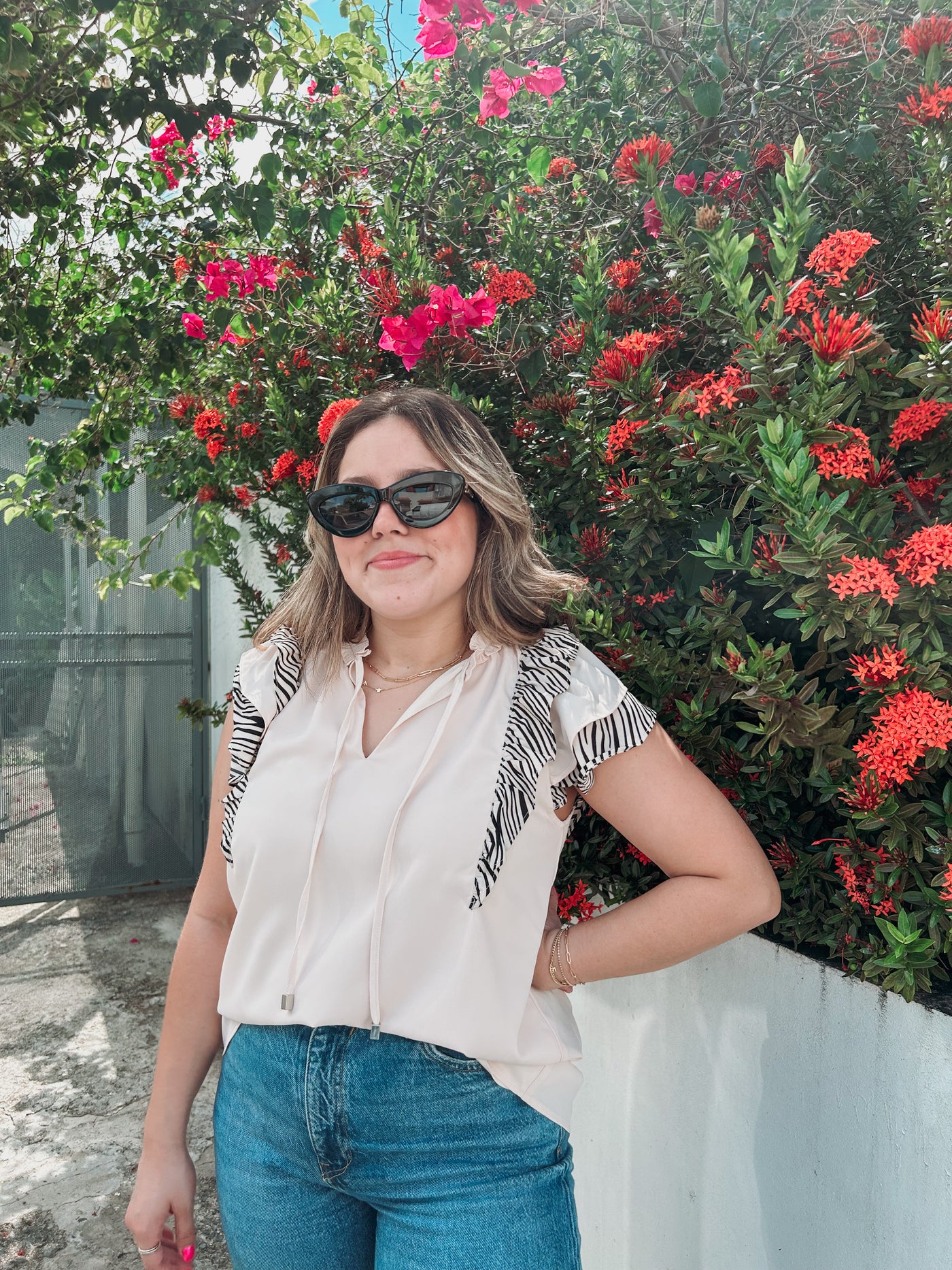 Inform when this item available: Tahitian Vanilla Printed Ruffle Blouse